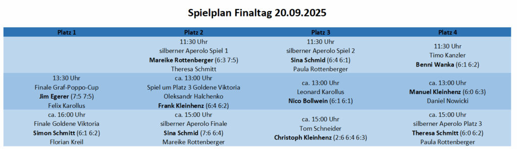 Alle Final- und Platzierungsspiele finden am Samstag, dem 20. September statt.